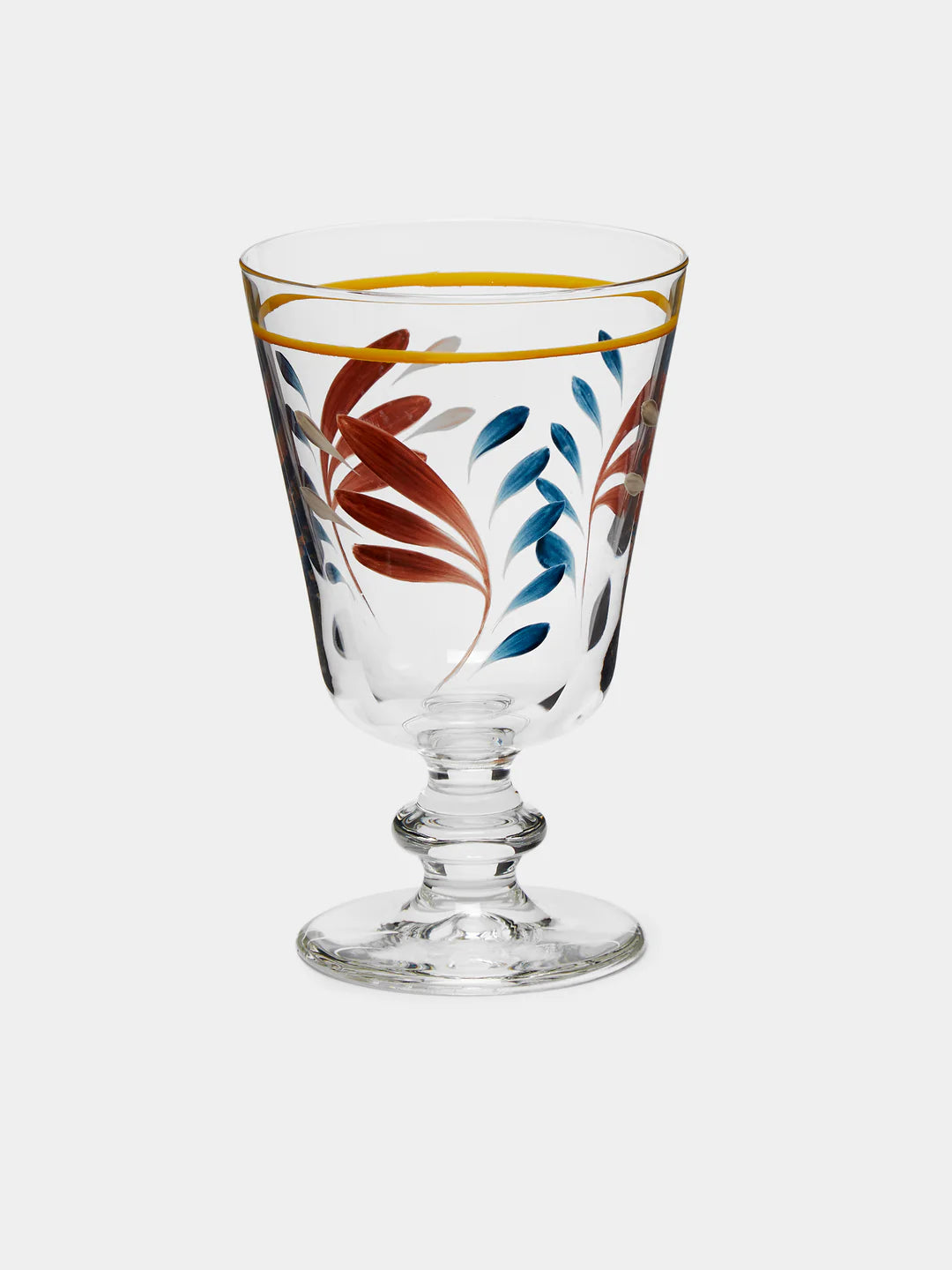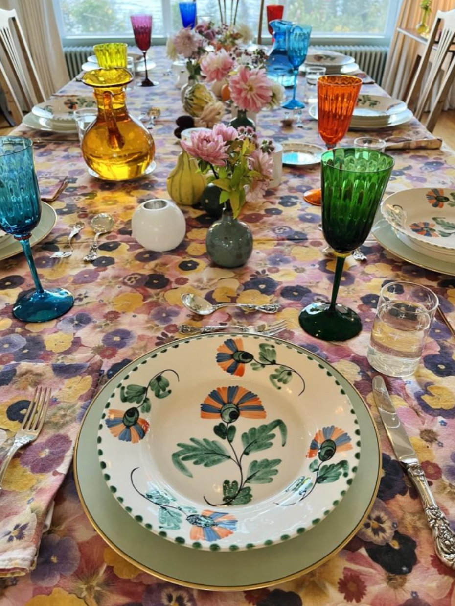 And for my dinner parties this fall, my table is rich in colors and textures. I have always had a love of colored glassware. This handpainted glass is one of my all-time favorites — from Los Vasos de Agua Clara found at ABASK.