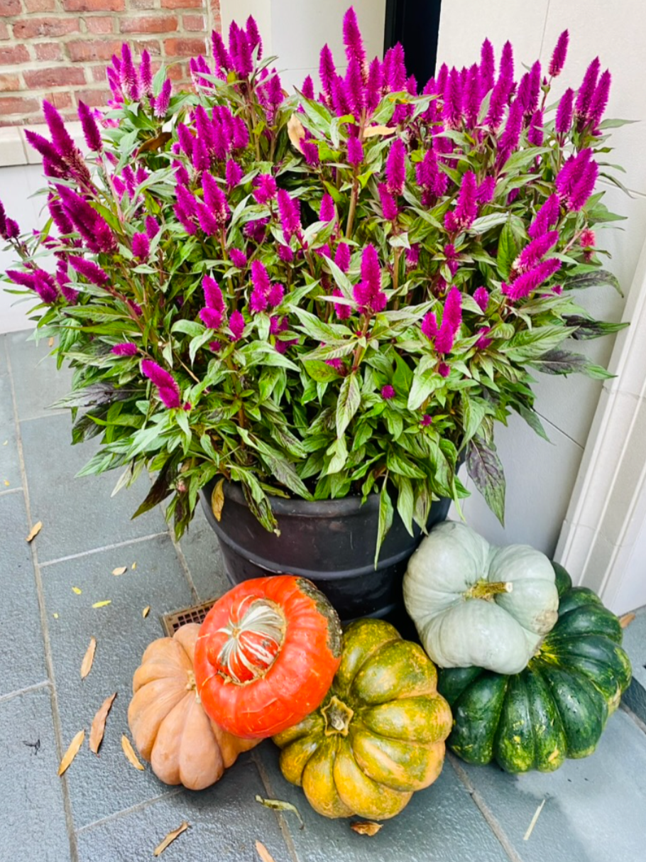 Flowers are next. On a recent trip to Maine at the beginning of October, my garden was still blooming with hearty fall flowers. I was able to cut and arrange my dahlias, cosmos, and zinnias as well as my hydrangeas. Dahlias and zinnias can be found in the most glorious colors — my favorites are tangerine orange zinnias and hot pink dahlias. If you have your own hydrangea bushes, their flowers gradually change into rich pinks and creams, and you can cut them super long to create a bigger, more dramatic moment in your hallway or on a console.